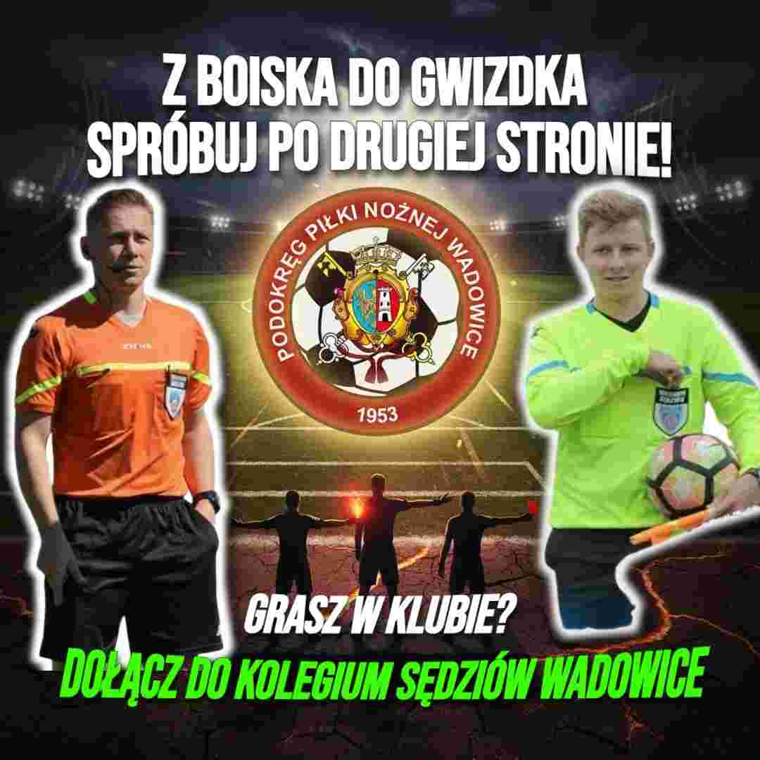 Kolegium Sędziów Podokręgu Piłki Nożnej Wadowice ogłasza nabór kandydatów sędziów piłki nożnej. Zapisy na kurs przyjmowane są w biurze Kolegium Sędziów w Wadowicach ul. Wojtyłów 17 lub drogą elektroniczną na adres e-mail: