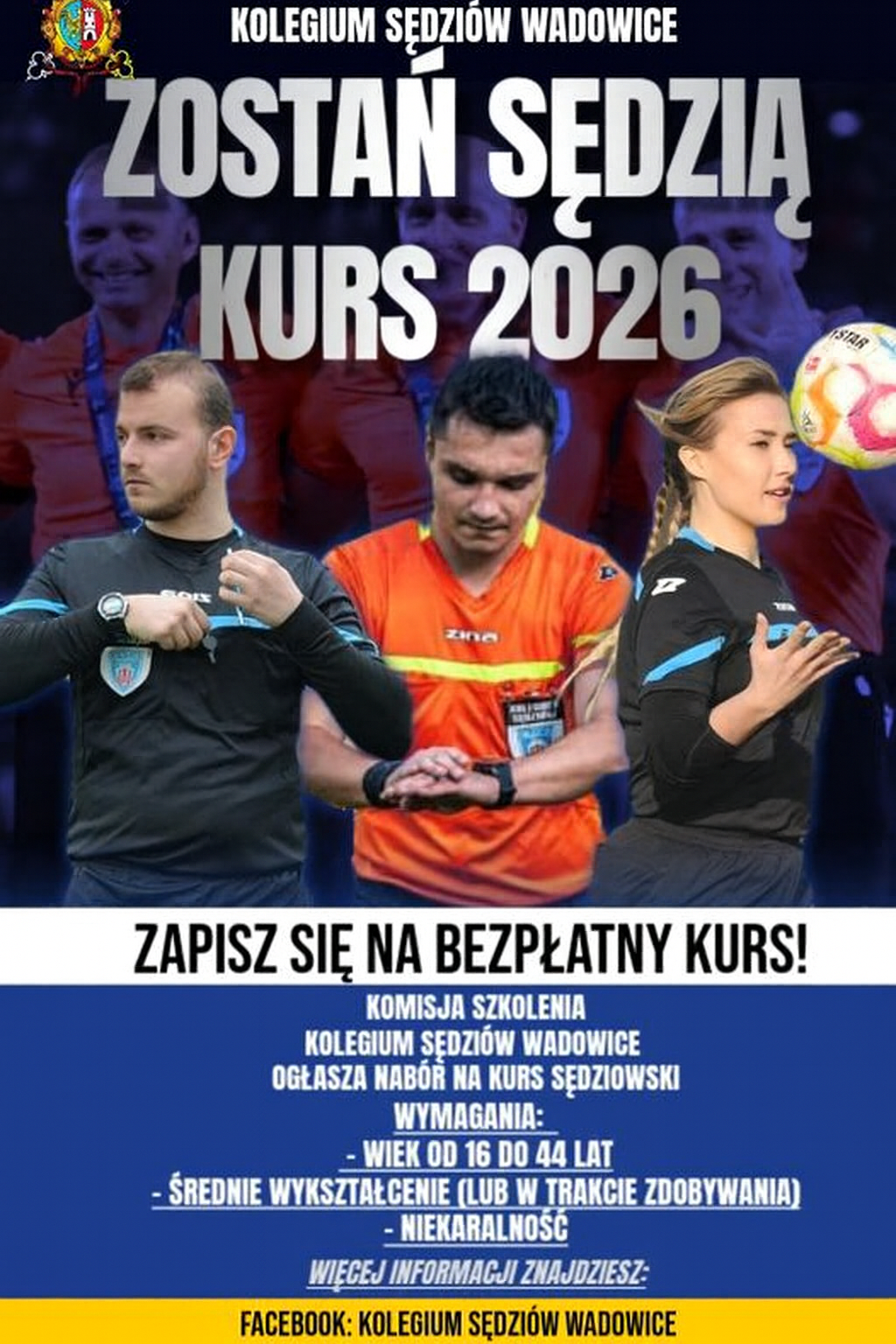 Informacja Kolegium Sędziów Wadowice, Przypominam, że najbliższe Zebranie Plenarne odbędzie się 10 czerwca 2025 roku o godz. 16:30 w lokalu Czartak, czyli jak zawsze w drugi wtorek miesiąca.